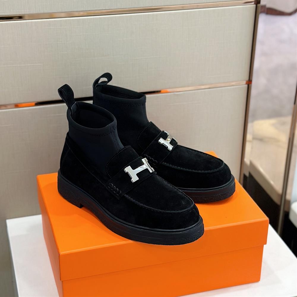 Herme Guillaume cowhide high top leather shoesCowhide patchwork Lycra fabric casual shoes paired with an inner sewn sole and classic glossy black create a fashionable lookCowhide patchwork Lycra upper with inner lining of cowhide and tendon stitching outsoleSize384445 customized TagId 52439002 .#hermes exhibition,#miu miu v #hermes shoes #Guillaume cowhide