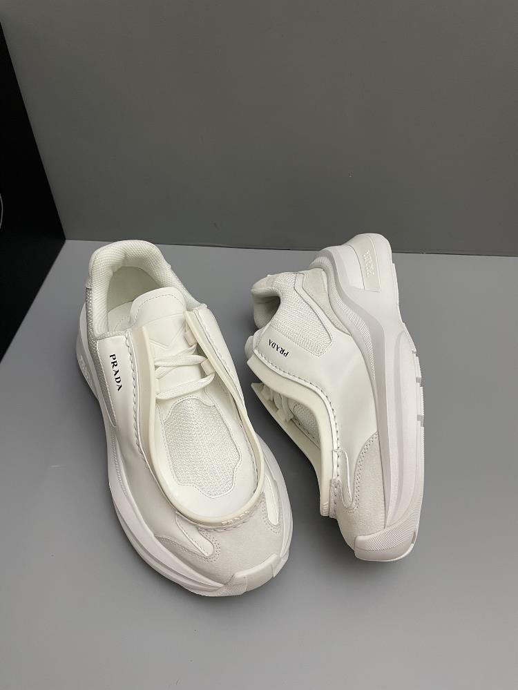 Prads shoes are full of sportiness reshaping the classic style with modern techniques The hidden shoelaces create a simple and elegant appearance while the stitching and raised edges showcase a graceful threedimensional beauty which embodies a spirit of craftsmanship as it is completely handma .#coco chanel style,#racamier louis vuitton #prada shoes #Thick soled casual sports shoes #logo is embedded