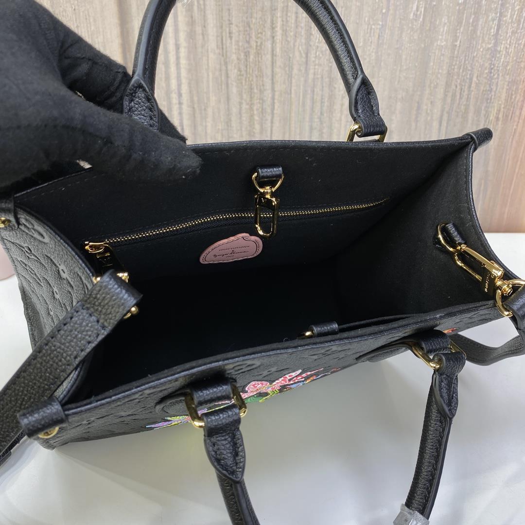 New exclusive embroidery and carving matching M21732 small sizeLV x YK OnTheGo PM MM, as the leader of x Yayoi Kusama series, adopts exquisite flower patterns inlaid on the gorgeous black letter combination Empreinte cowhide. Detailed features 251911.5 cm E681000