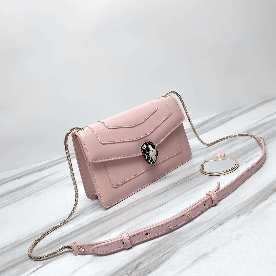 Bvlgar, imported cowhide series, with excellent touch, lightning, simple, fashionable, luxurious, and low-key. 22cm single layer single chain, lightweight and convenient to fit into a mobile phone. A string of keys, a makeup box, mischievous and perfect details are presented. Ouqiang model number 39174, size 22 13 5cm, counter gift box, gift bag(professional luxury fashion brand agent business)