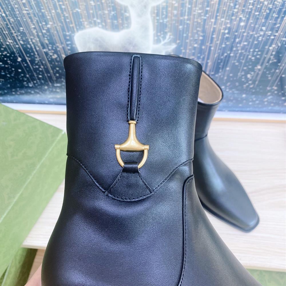 Factory Gucci Guccis latest popular autumn and winter half horse buckle detail boots European and American punk style horse buckle detail boots the